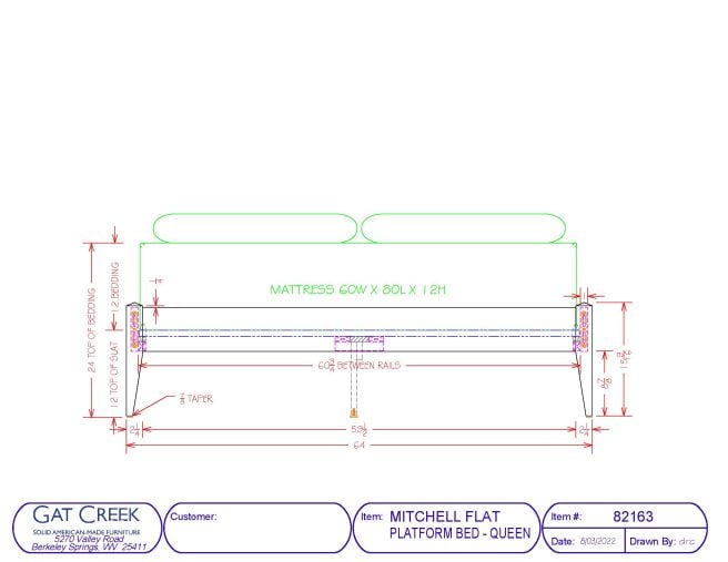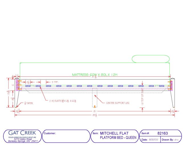 View Bed Details for an illustration of our low platform bed configuration. Designed to accommodate a mattress only or mattress and bunkie board height of 12".