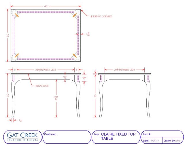The s-curve is known as as the “line of beauty” and the cabriole legs on our Claire Table is a fine example. The sense of movement and fluidity was not lost furniture makers as far back as the ancient Chinese and Greeks. Our slightly exaggerated execution adds a little lightheartedness to this timeless design.