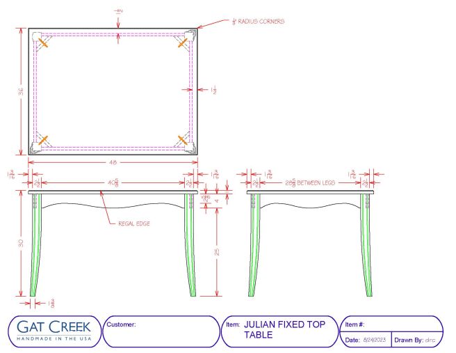 A chic selection, the Julian Table is formed from the ground up. The organic shape of the splayed fluted leg design sprouts out from the outside corners into a gently flowing apron profile. With the selection of a tabletop edges, there is still more consequential fashioning to do.