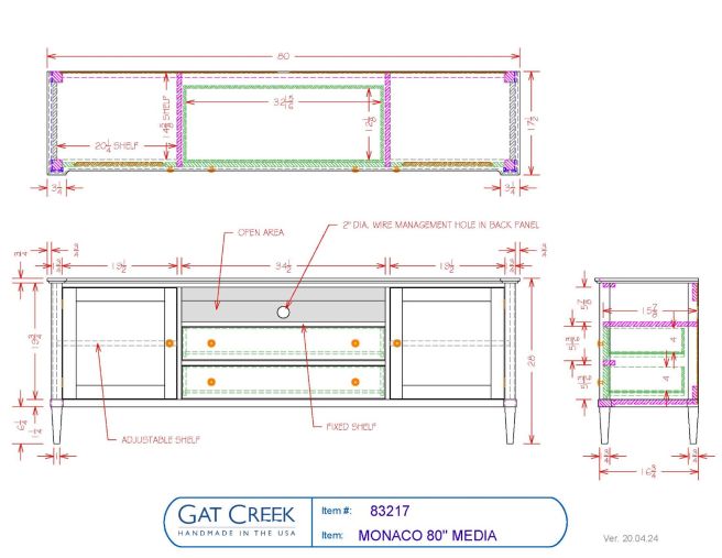Inside Drawer Dim: D12" x W24.75" x H4"