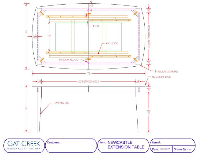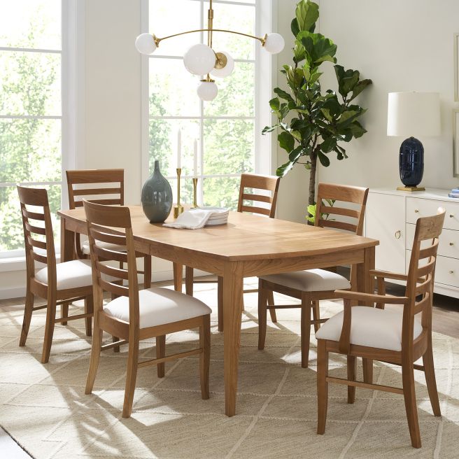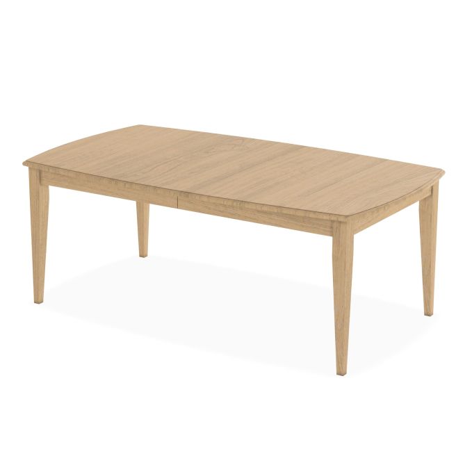 We characterize it as a boat shaped tabletop, but on second thought perhaps the Newcastle Table shape should be otherwise described. Spa tub? Soap bar? The bowed shape of the width and length of the table creates more room at the center for family style serving vessels or a generous flower arrangement.