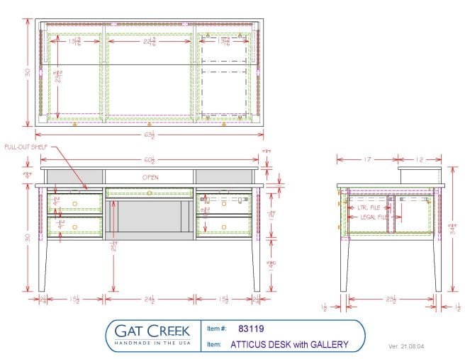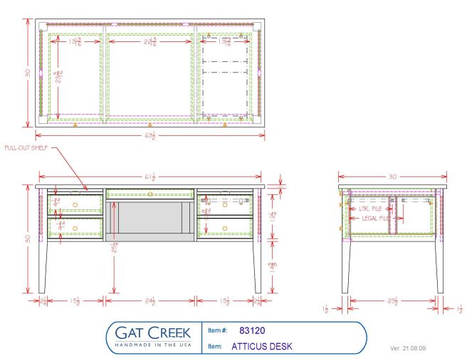 I was a long time Tom Sealy customer and I heard that Gat Creek has purchased the company so I figured I would look at their office line. This desk was exactly what I was looking for, I have a lot of monitors, keyboards, phones on my desk and I wanted something stylish but very American classic. The pull outs on each side are solid and functional, drawers open and close snuggly and flush. There is a nice durable finish on the top, 100% high quality American made product. Get it, it's worth the price.